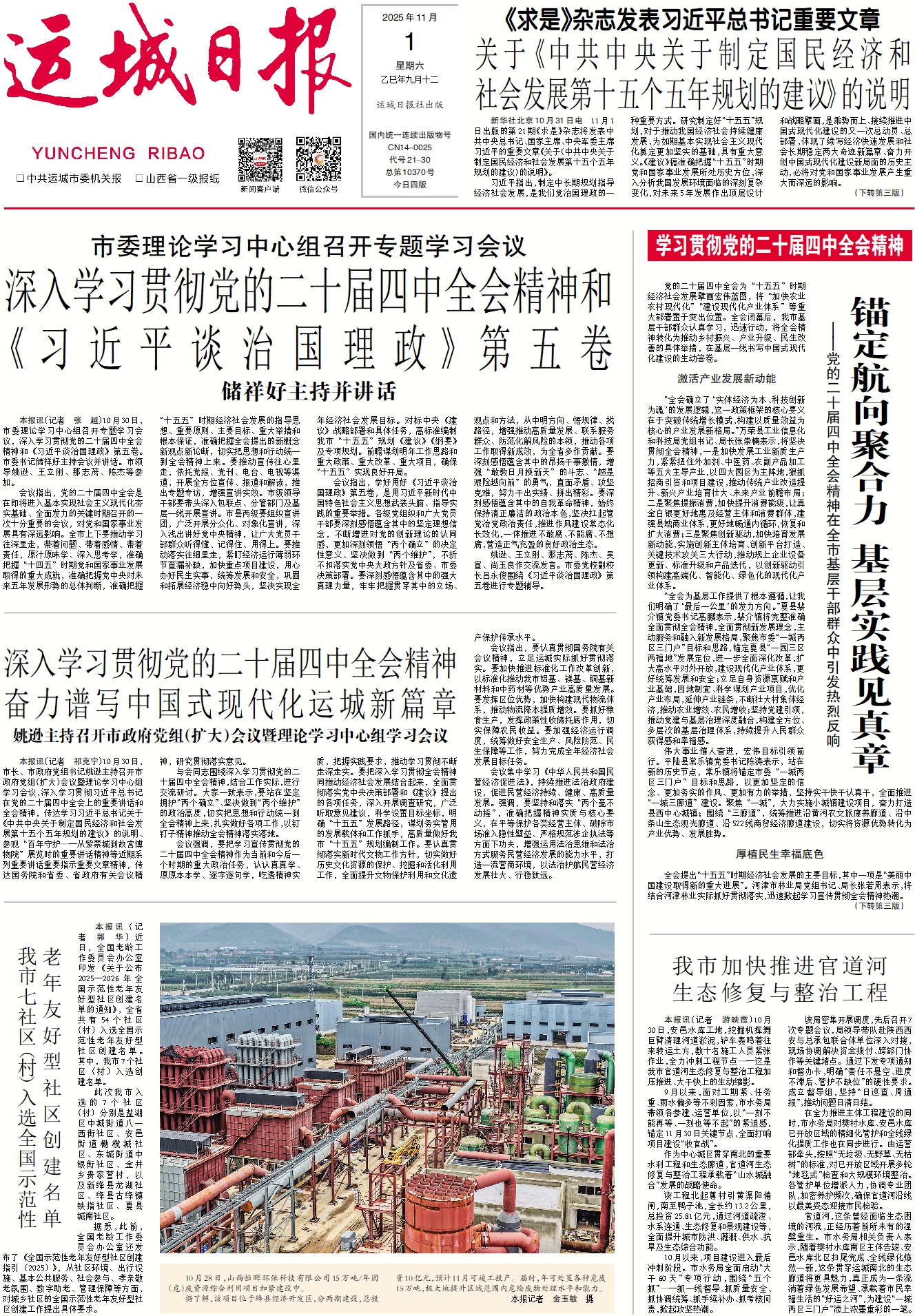 10月30日,市委理論學習中心組召開專題學習會議,深入學習貫徹黨的二十屆四中全會精神和《習近平談治國理政》第五卷。市委書記儲祥好主持會議并講話。